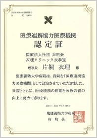 当院は慶應義塾大学病院の医療連携協力医療機関に認定されています。