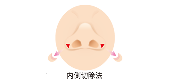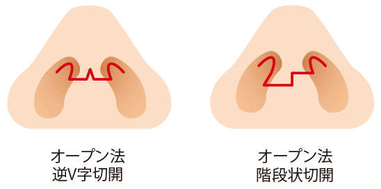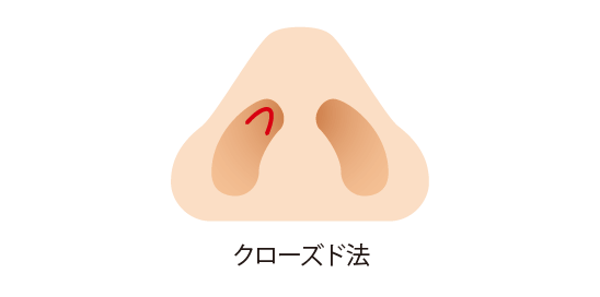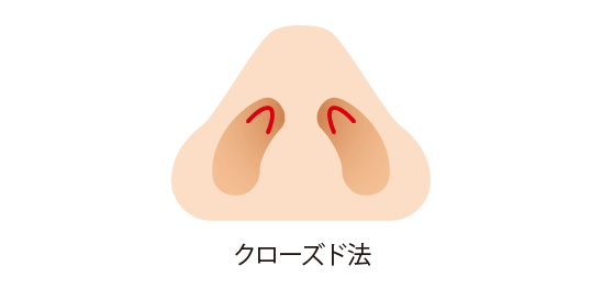 This method involves making separate incisions on the left and right sides of the nose along the nasal wing cartilage from the inside of the nose in a line close to the nostril margins. It has the advantage that the scar is not visible.