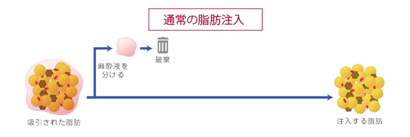 注入する脂肪は不純物を取り除き、濃縮した良質な細胞のみを配合。従来の脂肪注入を大きく上回る脂肪定着量を実現しました。