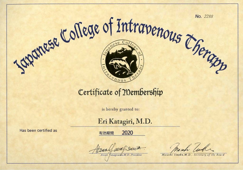 Dr.衣理は、「点滴療法研究会マスターズクラブ」の会員です