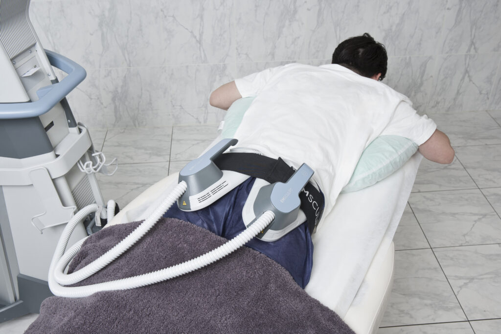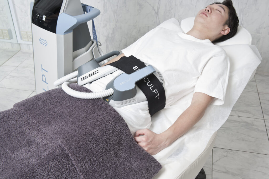 エムスカルプトは、30分間の施術で2万回の腹筋運動と同じ効果が得られるマシン。腹部だけではなく男性におすすめなのが臀部への施術。加齢に伴う臀部の下垂に働きかけ、注射やメスを使った外科手術なしで理想的な形状(逆ハートシェイプ)に導くことができます。ほかにも、ふくらはぎや二の腕などにも施術できます。