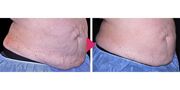 可動式のスタンプを2単位の範囲に動かして熱を体内に入れていく「トゥルスカルプ3D」。脂肪層の深くまで熱が入り、加熱された脂肪は代謝により体外へ排出され、脂肪細胞そのものを減少させます。二の腕やひざ上など、ボディの各部位にも対応可能。1回の施術で24%の脂肪減少効果が実証されています。